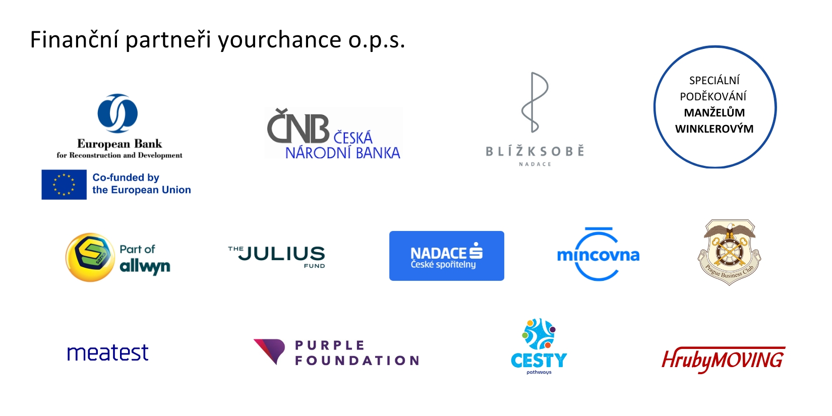 Děkujeme všem našim partnerům za veškerou podporu. Vážíme si toho, že právě díky vám můžeme realizovat všechny naše aktivity.